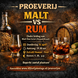 Onder leiding van Matt Don Griot (Pernod Ricard) nemen we je mee in de wereld van Single Malts en Premium Rums. Twee stijlen, twee werelden.