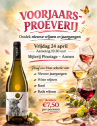 Ontdek nieuwe wijnen en jaargangen tijdens onze voorjaarsproeverij.